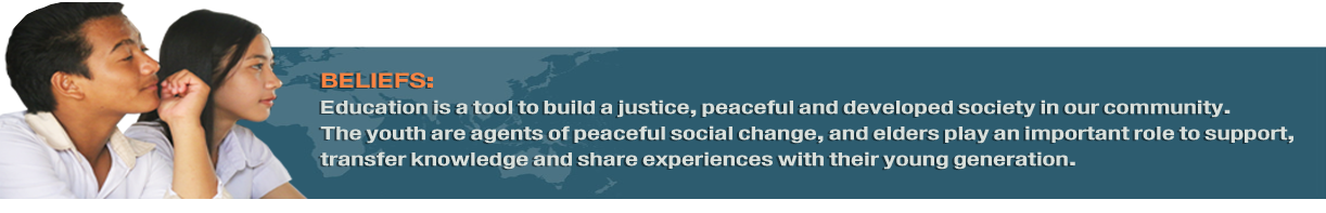 Beliefs: Education is a tool to build a just, peaceful and developed society in our community. The youth are agents of peaceful social change, and elders play an important role to support, transfer knowledge and share experiences with their young generation.